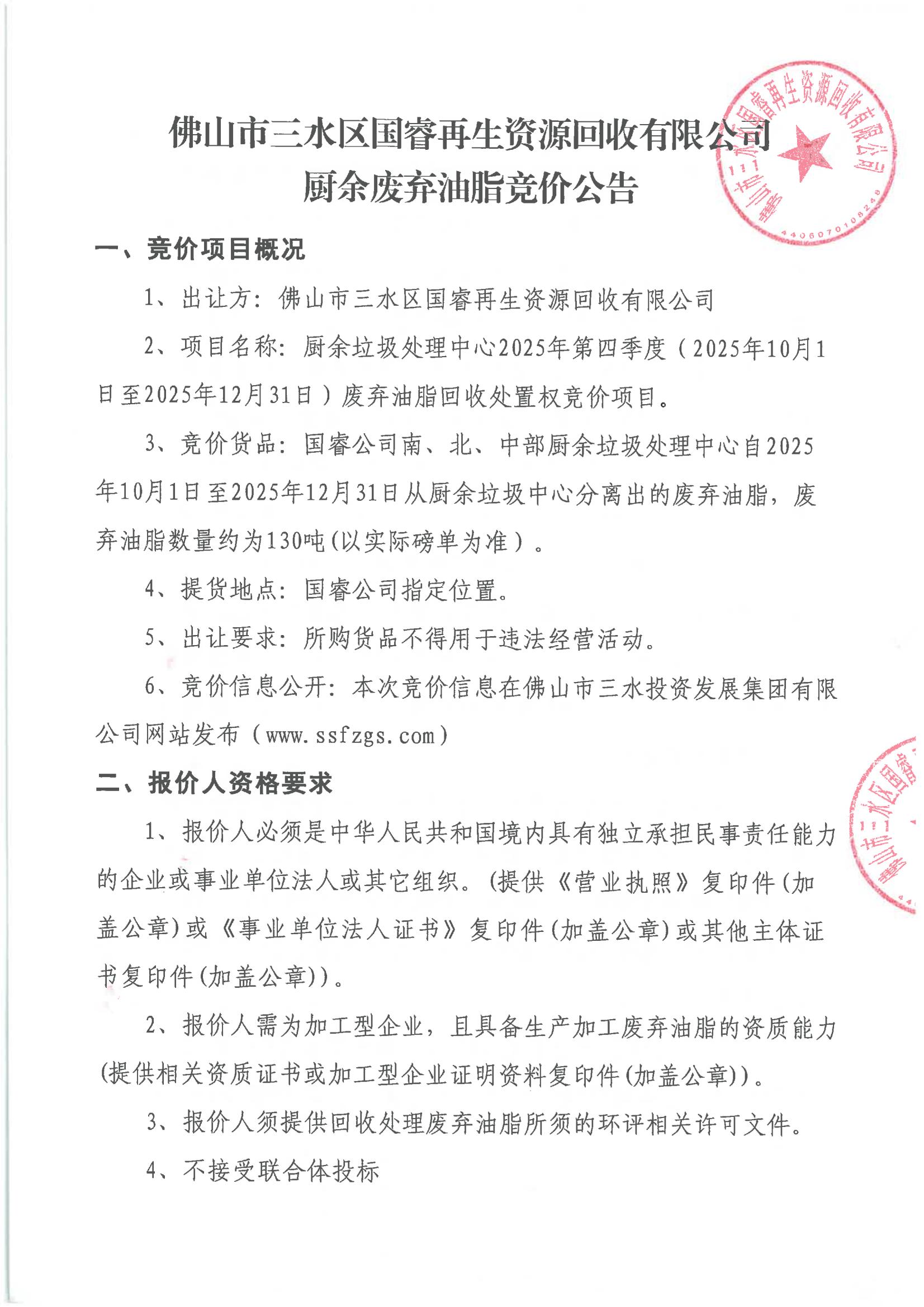 附件4:国睿废弃油脂竞价公告(报价人相关的资质许可文件证明资料复印件)
