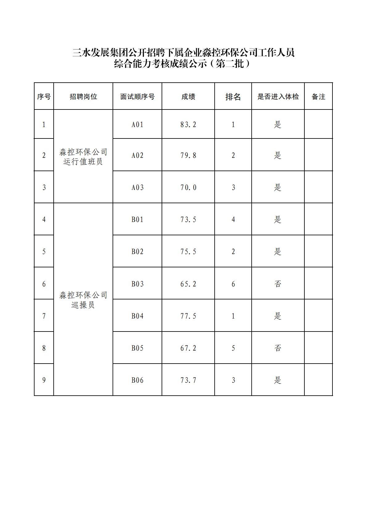 bwin必赢唯一官方网站集团公开招聘下属企业淼控环保公司工作人员综合能力考核成绩公示(第二批)