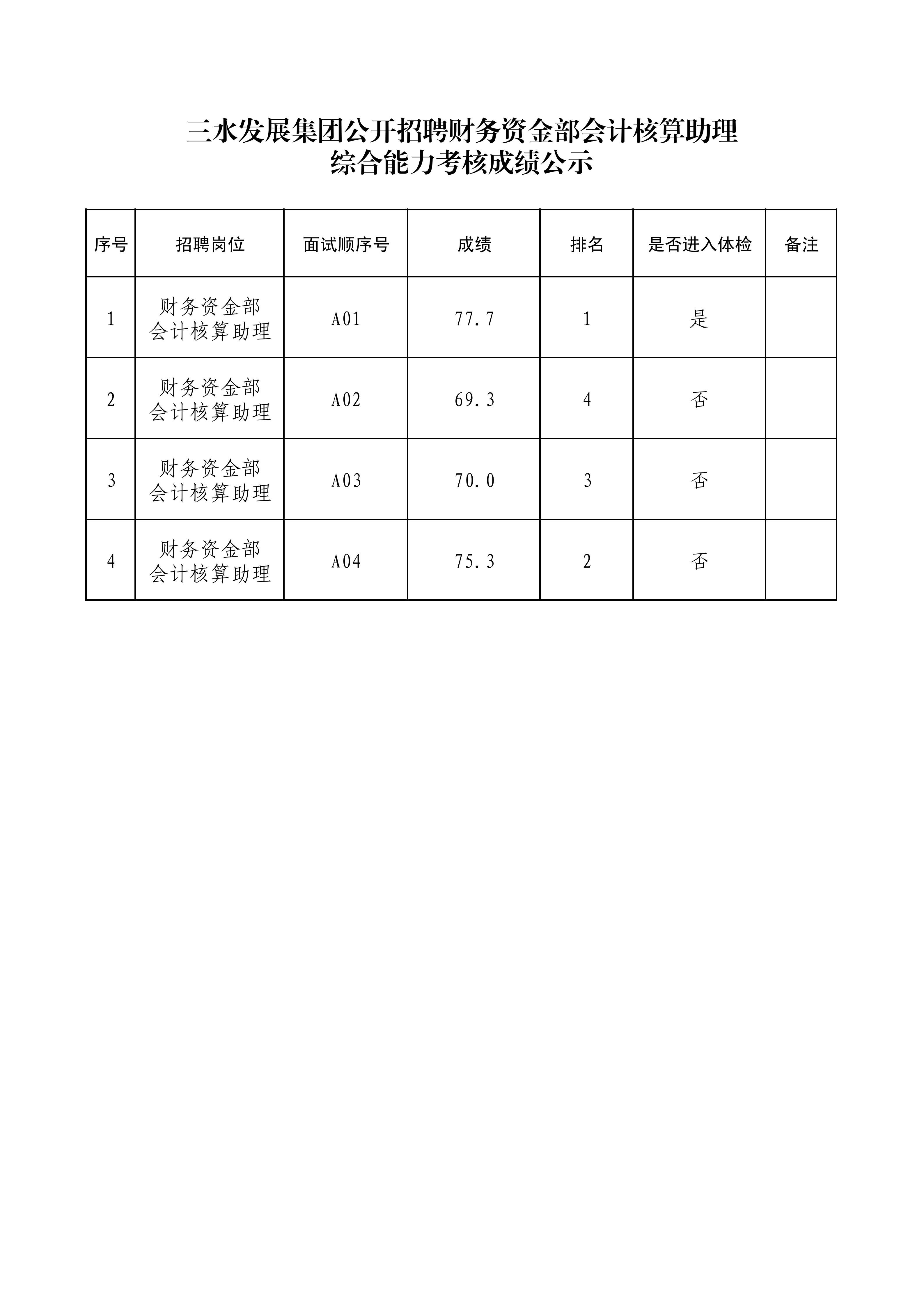 bwin必赢唯一官方网站集团公开招聘财务资金部会计核算助理综合能力考核成绩公示